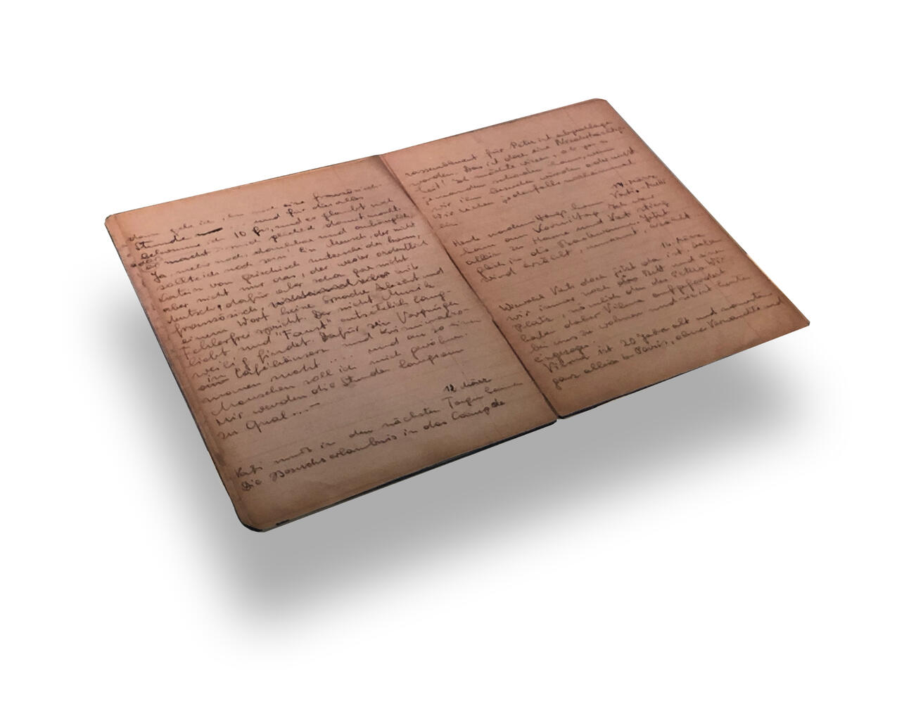 This diary was written in the margins and end pages of a book in the spring and summer of 1944. At the time of these writings, the Lodz ghetto was the only Jewish ghetto still standing in occupied Poland. The diarist writes of his father, who died from starvation in the ghetto, and his sister. The diarist was fluent in four languages - Polish, Yiddish, Hebrew and English - and moved between them with ease. The ghetto had several deportations in 1942, notably to the killing center of Chelmno, but in August 1944 the final deportation occurred with almost all of the surviving inhabitants of the ghetto being sent to the killing center Auschwitz-Birkenau. Nothing specific is known of the fate of this diarist, though it is believed he and his sister perished. The diary itself was found after the war and donated to Yad Vashem.
